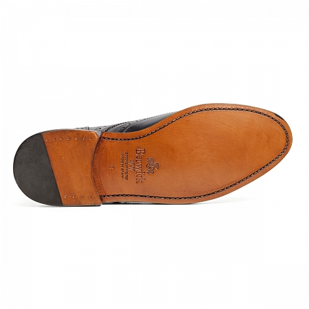 Немного технических нюансов. Туфли Berwick 2370L Black сшиты в традиционной рантовой конструкции под названием Goodyear Welted. Она высоко котируется среди любителей классической обуви, потому что даёт оптимальную поддержку стопам и к тому же гарантирует долгий срок службы ботинок. Кожа box calf (однотонная гладкая телячья), использованная для верха туфель Berwick 2370L Black, славится эластичностью, износостойкостью и комфортом. Подкладка из натуральной кожи тоже комфортна и является несомненным плюсом, а вот с полностью кожаной подошвой дела обстоят чуть сложнее. С одной стороны, в некоторых случаях она комфортнее резиновой и к тому же более традиционно выглядит. С другой стороны, в дождь такая подошва может пострадать и промокнуть, поэтому на её переднюю часть нужно поставить резиновую профилактику, если вы планируете носить туфли не только в сухую погоду.