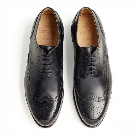 Berwick 2370L Black — это туфли с открытой шнуровкой и декоративной перфорацией на мысках и вдоль практически всех швов. Они могут хорошо подойти обладателям стоп с обычным или высоким подъёмом. Степень формальности у этих брогов невысокая, но некоторые фирмы разрешают ношение подобных туфель в офисе. Согласно консервативному взгляду, для деловой встречи такая модель подходит плохо, но сегодня многое зависит от того, как одеваются ваши партнёры, и в какой обстановке проходит встреча. В любом случае, у вас будет масса поводов для ношения туфель Berwick 2370L Black за пределами работы, потому что они в равной мере подходят и для прогулки по парку или городским улицам, и для встречи с друзьями, и для посещения кафе или кинотеатра.