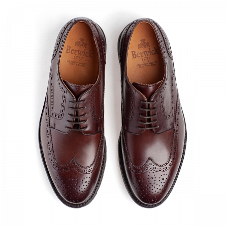 Berwick 4170V Dark Brown Vegano — это практичные броги, сшитые из коричневой гладкой кожи и оснащённые открытой шнуровкой. Они выглядят неформально и при этом очень традиционно, консервативно и одновременно актуально. Такие туфли могут отлично вписаться в гардероб большинства мужчин, а в России они особенно уместны благодаря своей выносливости.