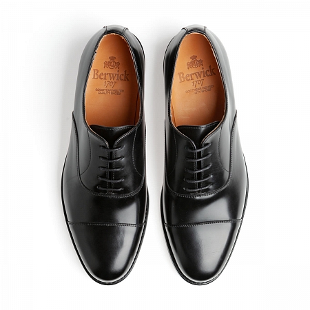 Модель Berwick 5241 Black Rois — это черные оксфорды с отрезным мыском (cap toe oxfords). Отсутствие брогирования и черный цвет делают эту модель очень строгой, так что лучше сочетать её с костюмами, визитками (morning coats) и строллерами (stroller suits). Кроме того, такая обувь может неплохо смотреться с непарными брюками из серой шерстяной фланели, а вот с джинсами, вельветовыми и твидовыми брюками её носить не следует.