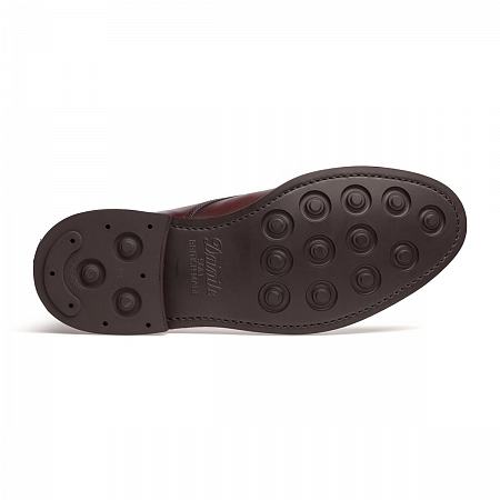 Конструкция Goodyear welted позволяет ботинкам Berwick 337 Burgundy Saddle сохранять хорошую форму долгие годы; кроме того, благодаря в меру жёсткой структуре и пробковому слою она обеспечивает должную опору для ваших стоп. Кожа saddle calf, использованная для внешней части верха, не является капризной и при грамотном уходе служит много лет. Подкладка здесь тоже качественная и, что немаловажно, комфортная. Наконец, похвалить стоит и подошвы Dainite — выносливые, долговечные, простые в уходе (единственный их минус — плохая устойчивость на льду).