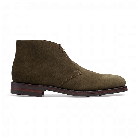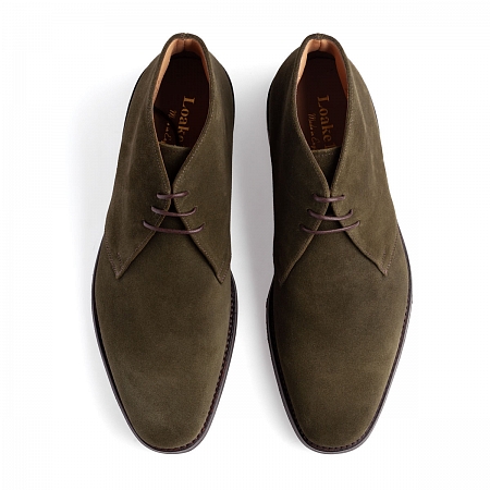Loake Pimlico Olive Suede — это тёмно-зелёные замшевые ботинки чукка, снабжённые износостойкими резиновыми подошвами Dainite. Колодка Capital и стандартная полнота F делают эти ботинки подходящими практически для всех покупателей со стопам средней ширины или немного уже/шире средней. Благодаря открытой шнуровке эта модель подходит и обладателям стоп с высоким подъёмом.