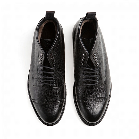 Berwick 482V Black Grain — это мужские ботинки с открытой шнуровкой, сделанные из телячьей кожи чёрного цвета. Их мысы украшены классической декоративной перфорацией, а подошвы сделаны из британской синтетической резины высокого качества. Подкладка выполнена из меха, но стелька кожаная. При желании вы можете дополнить ботинки меховой стелькой, которую нужно будет купить отдельно. Этот аксессуар позволит носить Berwick 482V Black Grain даже в сильные морозы, а когда стелька износится, вы сможете с лёгкостью её заменить.