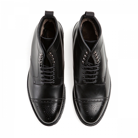 Berwick 481V Black — это мужские ботинки с открытой шнуровкой, сделанные из телячьей кожи чёрного цвета. Их мысы украшены классической декоративной перфорацией, а подошвы сделаны из британской синтетической резины высокого качества. Подкладка выполнена из меха, но стелька кожаная. При желании вы можете дополнить ботинки меховой стелькой, которую нужно будет купить отдельно. Этот аксессуар позволит носить Berwick 482 Black даже в сильные морозы, а когда стелька износится, вы сможете с лёгкостью её заменить.
