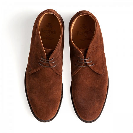 Коричневая замша европейского производства, которую обувщики Berwick использовали для пошива верха модели Berwick 451 Brown Suede, приятна в носке, красиво выглядит и отличается высокой износостойкостью (единственный нюанс: перед ношением в сырую погоду обувь из этой замши следует обработать хорошей водоотталкивающей пропиткой). Резиновые подошвы Dainite прекрасно переносят дожди и слякоть, а конструкция Goodyear welted делает ботинки долговечными, основательными и пригодными для долгой ходьбы. Ещё одним плюсом является подкладка из высококачественной натуральной кожи.