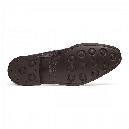 Добавим, что туфли Berwick 3143D Dark Brown Grain обладают рядом важных признаков обуви высокого уровня. Они сделаны в надёжной рантовой конструкции Goodyear welted, снабжены подкладкой из дышащей кожи отличного качества и резиновыми подошвами от весьма уважаемой марки Dainite. Зернистая телячья кожа, из которой сшит верх данных монков, тоже заслуживает положительной оценки: она прочная, симпатичная на вид, износостойкая и относительно простая в уходе.
