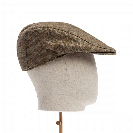 Dents Abraham Moon Herrinbone Tweed Flat Cap Brown