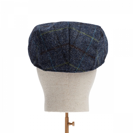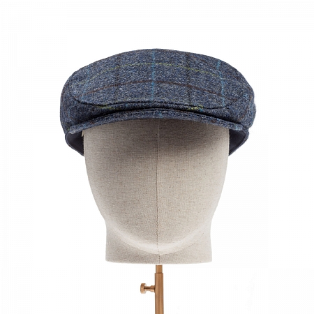Dents Abraham Moon Herrinbone Tweed Flat Cap Blue