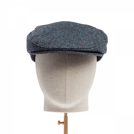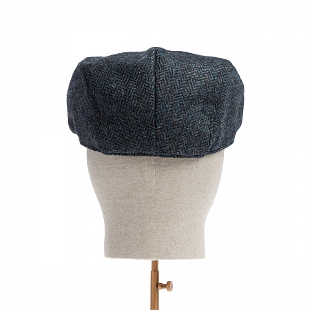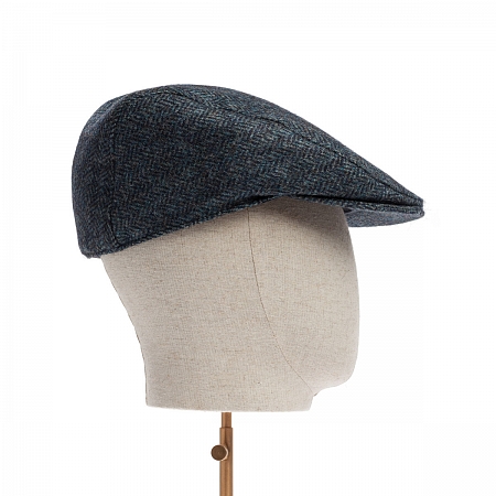 Dents Abraham Moon Herrinbone Tweed Flat Cap Navy
