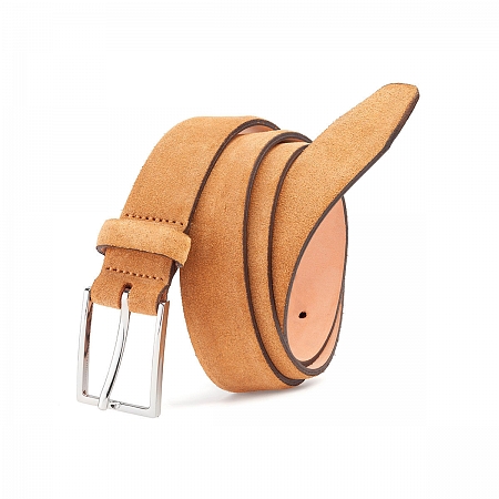 British Belt Stratton Tan Suede — это светло-коричневый замшевый ремень с минималистским дизайном. Он удачно сочетается с большим количеством предметов неформального гардероба, начиная от льняных и хлопковых костюмов и заканчивая строгими на вид джинсами и чиносами. К такому ремню подходит светло-коричневая обувь. Более того, можно поэкспериментировать и с моделями других цветов — скажем, синими или зелёными.