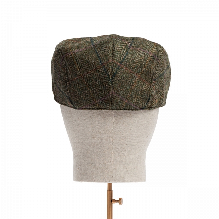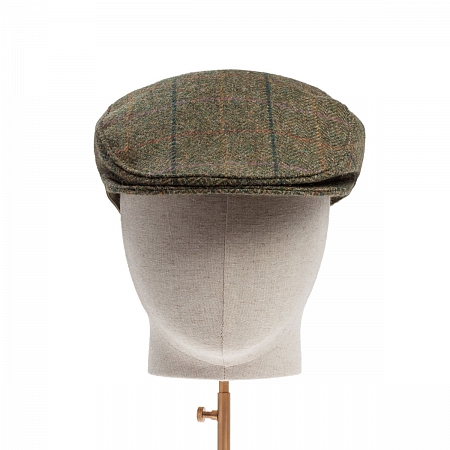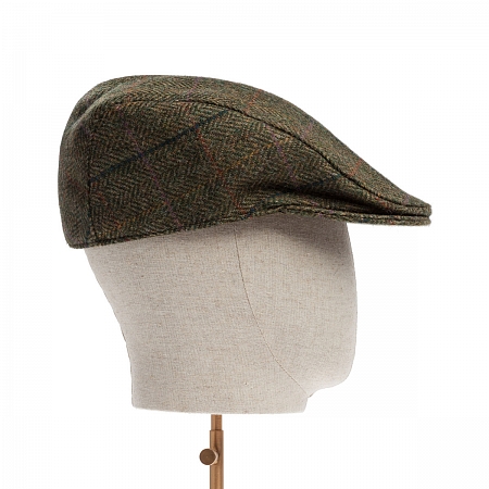 Dents Abraham Moon Herrinbone Tweed Flat Cap Olive