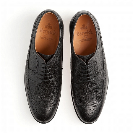 Berwick 3681 Black Grain — это представители довольно редкой модели мужских туфель с открытой шнуровкой, которую американцы называют термином longwing bluchers. Её отличительными чертами являются длинные боковые швы. Кроме того, для этих туфель характерны W-образные швы на мысах и обилие декоративной перфорации, так что их можно назвать полными брогами. Степень официальности, соответственно, низкая, и поэтому Berwick 3681 прекрасно подойдут для встреч в неформальной обстановке, загородных поездок, пикников, прогулок, походов в магазины, кинотеатры или кафе. В офисе такие туфли выглядят уместно тогда, когда отсутствует строгий дресс-код.