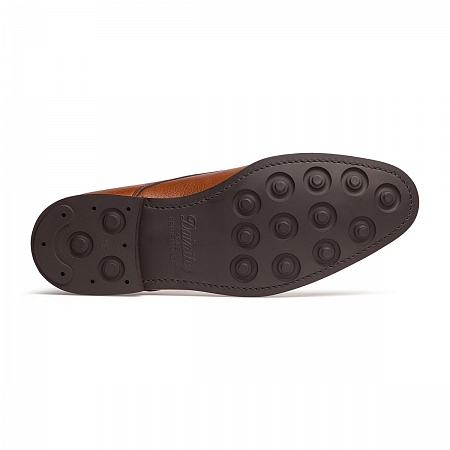 Подошвы Dainite, которыми оснащены монки Berwick 3143D Tan Grain, славятся износостойкостью и выносливостью; кроме того, благодаря довольно нейтральной внешности и малой толщине они нормально гармонируют со множеством предметов гардероба. Зернистая кожа хороша практичностью, и за ней достаточно просто ухаживать. Конструкция Goodyear welted обеспечивает комфорт при долгой ходьбе и даёт вашим стопам должную поддержку; помимо этого, она позволяет туфлям сохранять форму много лет. Наконец, к числу преимуществ данных монков можно отнести и подкладку, сшитую из добротной и комфортной кожи телёнка.