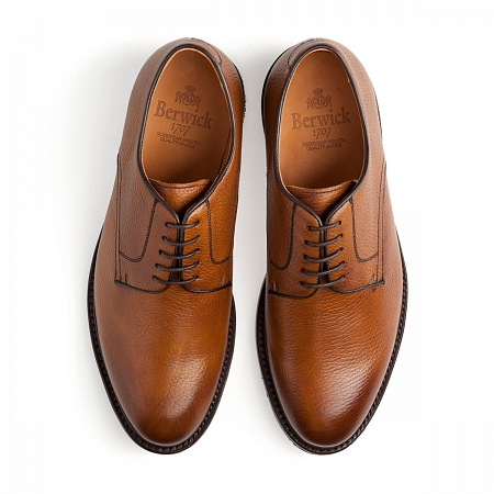 Berwick 4169D Tan Grain — это туфли-дерби, выполненные из светло-коричневой зернистой кожи. Модель неформальная, и лучше всего она гармонирует с твидовыми костюмами и брюками, джинсами, клетчатыми фланелевыми костюмами, а также с брюками из вельвета, молескина и хлопкового твила. Соответственно, туфли Berwick 4169D Tan Grain идеально подходят для загородных поездок, экскурсий, прогулок по городу или лесопарку, неформальных встреч.