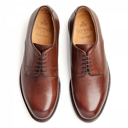 Berwick 4169 Brown Grain — это туфли-дерби, выполненные из коричневой зернистой кожи. Модель неформальная, и лучше всего она гармонирует с твидовыми костюмами и брюками, джинсами, клетчатыми фланелевыми костюмами, а также с брюками из вельвета, молескина и хлопкового твила. Соответственно, туфли Berwick 4169 Brown Grain идеально подходят для загородных поездок, экскурсий, прогулок по городу или лесопарку, неформальных встреч.