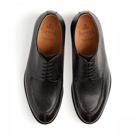 Конструкция Goodyear welted, в которой шьются дерби Berwick 4188D Black Grain, известна долговечностью и выносливостью. Зернистая кожа, использованная для верха данной модели — материал износостойкий и весьма практичный, да и резиновые подошвы Dainite способны прослужить далеко не один год (кроме того, они легко чистятся и выглядят аккуратно и достаточно элегантно). Стоит похвалить и подкладку этих туфель, которая выполнена из хорошо дышащей гладкой кожи и обеспечивает достойный уровень комфорта.